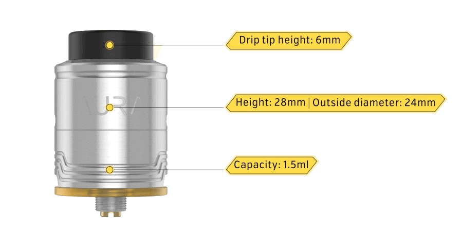 Le double coil pouvant chauffer, une bague en Ultem a été ajoutée à la base du Aura RDA permettant d'isoler le dripper de votre box.