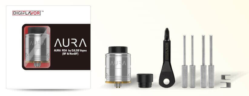 Conçu par Digiflavor, le Aura RDA est un dripper double coil orienté saveurs.